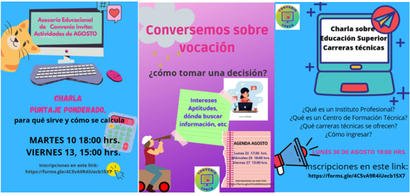 invitamos a participar de las actividades del mes de agosto de Asesoría Educacional de Convenio.